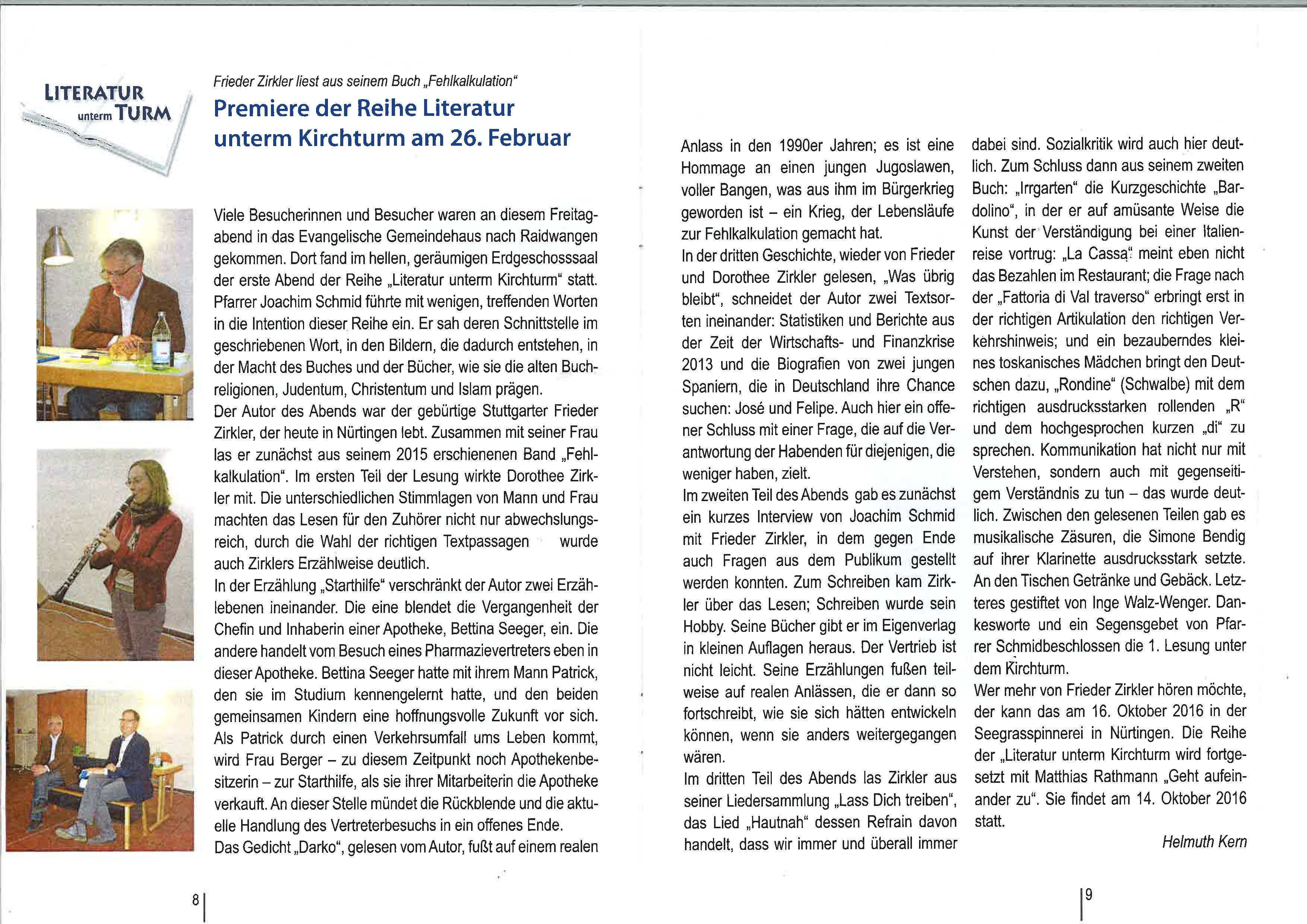 Nürtinger Zeitung zur Lesung beim Seniorenfrühstück im Juni 2024